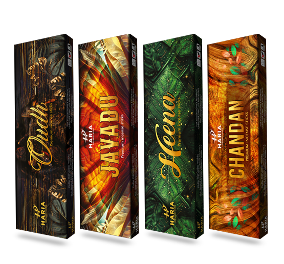 Haria Fragrances is a one-stop store that brings to you the best fragrance products from an array of handpicked products . Along with our premium quality incense sticks these in-demand products such as fragrance oils , essential oils , roll on oils , Reed diffuser oils , camphor cones as part of the collection.
